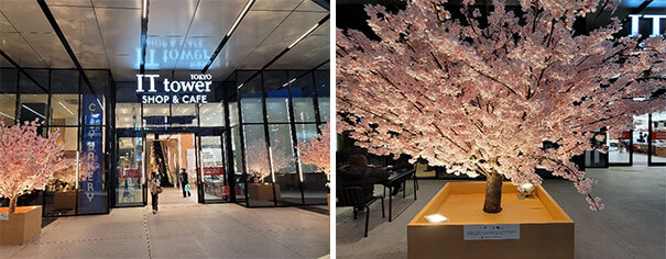 エントランスでは、今の季節にぴったりの鮮やかな「アート桜」がお出迎え。