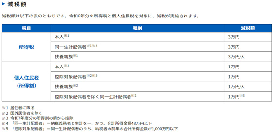 今回の定額減税は、2024年(令和6年)4月1日に施行された「令和6年度税制改正法」 に含まれる制度です。具体的な減税額は、納税者及び配偶者を含めた扶養親族1人につき、令和6年分の所得税3万円、令和6年度分の個人住民税1万円となっています。